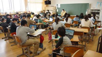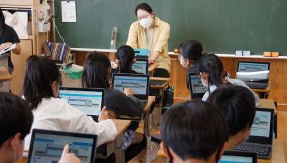 6年1組の理科の授業の様子です。ICT支援員さんにも協力していただきました。