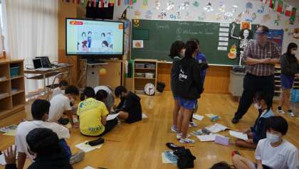 6年1組の英語の授業の様子です。日本の紹介を行っていました。