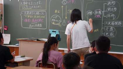6年生の授業の様子です。教頭先生の社会の様子です。