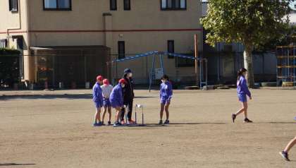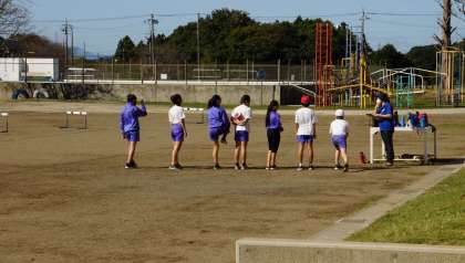 6年生が,校庭で体育の授業を行っていました。陸上記録会に向けて,みんな真剣に取り組んでいました。