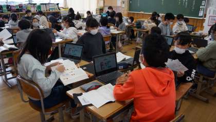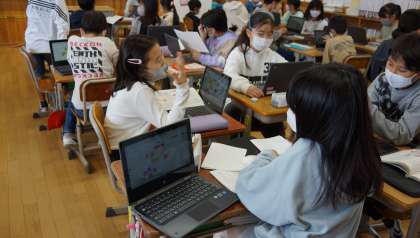 5年1組の授業の様子です。タブレットで付箋機能を使っていました。