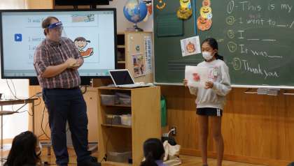 6年1組の英語の授業の様子です。大きな声で,発表ができました。