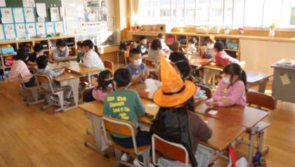 2年1組のハロウィンパーティーの様子です。