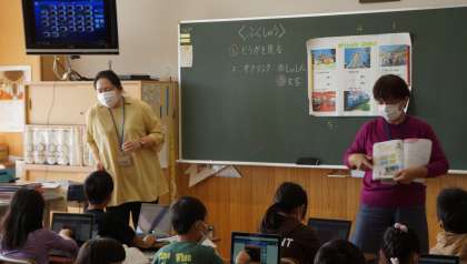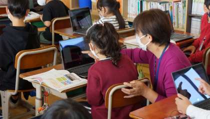 2年1組の授業の様子です。ICT支援員さんの協力で,タブレットの活用も上手になりました。