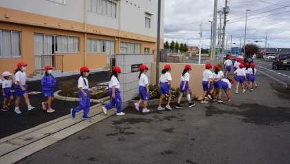 1,2年生が「持久走大会」のコースを試し歩きしました。