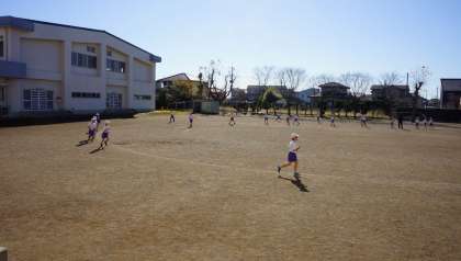 2年生の体育の授業の様子です。明日の持久走大会のリハーサルをしました。