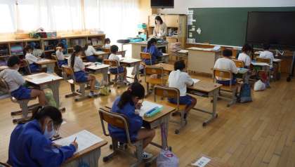 1年生の授業の様子です。計算力テストを行っていました。