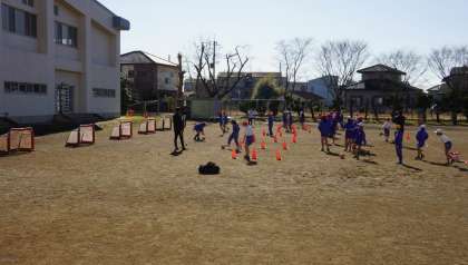 5年生が鹿島アントラーズサッカー教室を行いました。みんな楽しそうに行っていました。
