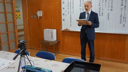 放送による全校集会を行いました。表彰式と檜山先生,樫村先生,菊池先生からお話がありました。
