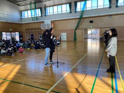 今日は、体育館で第23回カルタ取り大会が開かれています。58名が、真剣勝負に取り組んでいます。