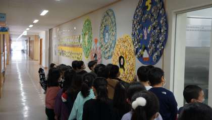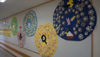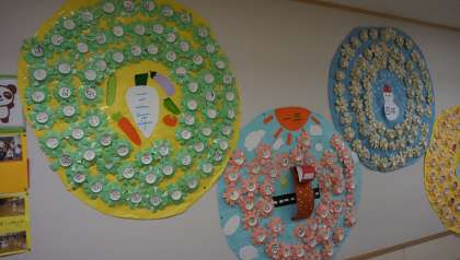 わくわくふれあいデーの時に作成した作品が,職員室廊下に掲示されています。