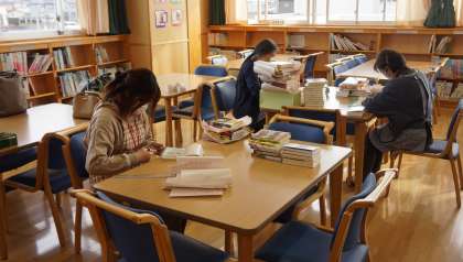 毎月,ひたちなか市より図書館司書補助の方が図書室で,本の整理や補修等を行ってくれています。今日は,応援の方々の協力で新しい本のカバー付けを行って頂けました。ありがとうございました。湊三小の皆さん,本を丁寧に大切に読んで欲しいと思います。