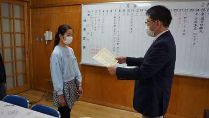 クラスルームによる「全校集会」を行いました。表彰のあと,小野瀬先生,堀口先生の話がありました。