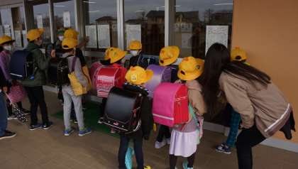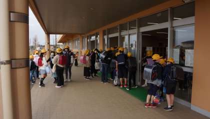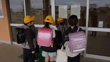 新しいクラスが発表されました。みんな笑顔で,見ていました。