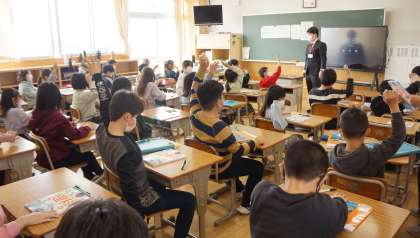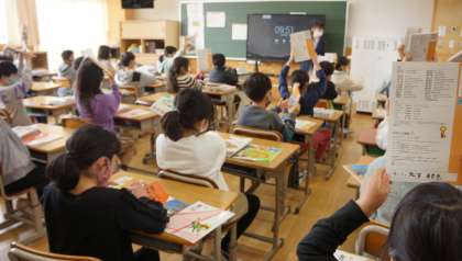 4年生の学級の様子です。教科書を配付していました。