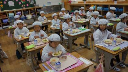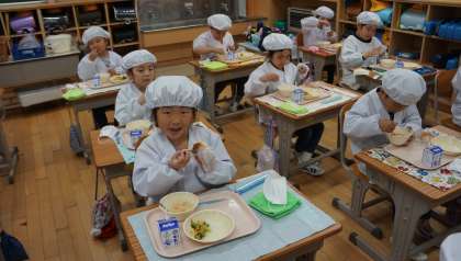1年生の初めての給食の様子です。みんなの残さず完食できました。