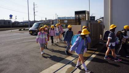 みんな元気に登校しています。半袖姿が増えてきています。