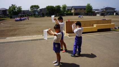 4年生の授業の様子です。気温を測定していました。22度ありました。