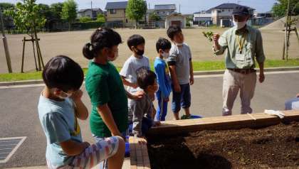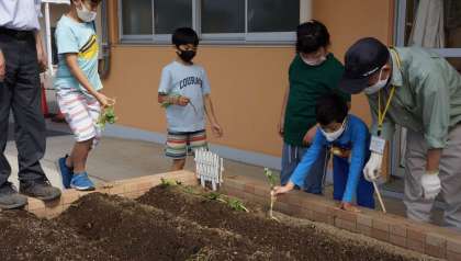 そよかぜの授業の様子です。さつまいもの苗を植え付けました。