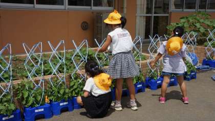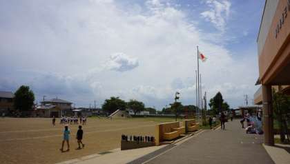 青空も見えてきて、昼休みは花壇の草取りやアサガオの水かけをしていました。