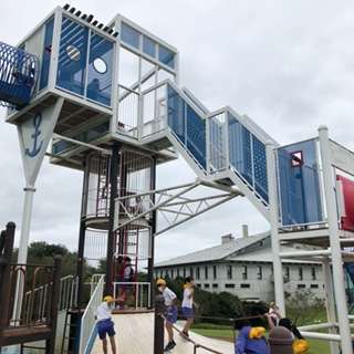 お昼前にアスレチックで思いっきり楽しんでいます。