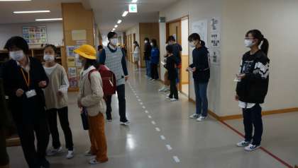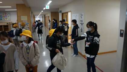 昇降口で、あいさつ運動をおこないました。みんな元気にあいさつができました。