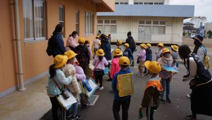 2年生が、まち探検に出発しました。9名の保護者の方にもご協力をいただきました。