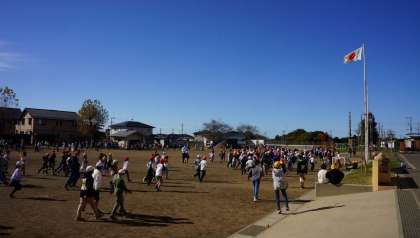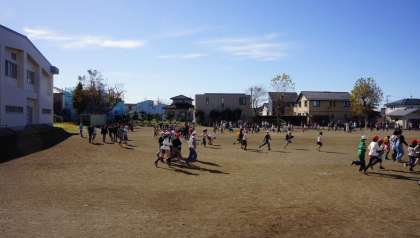 持久走大会に向けて、中休みは全校児童でグランドを走っています。青空が気持ちいいです。