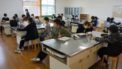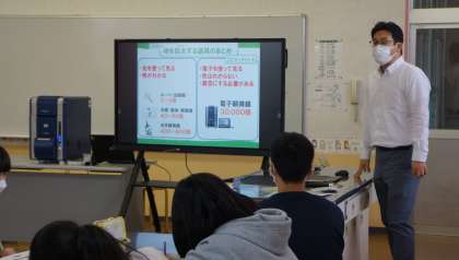 6年2組の授業の様子です。電子顕微鏡の授業を行いました。