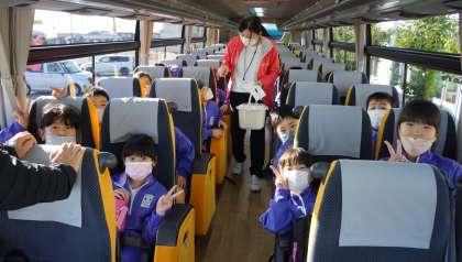 3年生が、出発式を行いました。モビリティリゾートもてぎに向けて出発します。