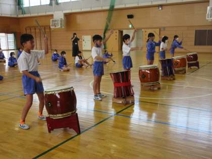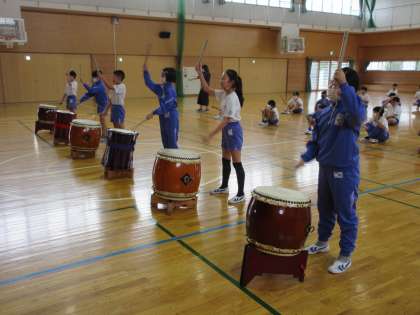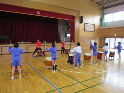 令和5年11月2日 和太鼓体験教室(5の2) 公開日 2023/11/02 更新日 2023/11/02 その他 子どもたちは、順番に実際に和太鼓をたたいて演奏したり、2人の先生方の演奏をきいたりして和太鼓の音色やリズムに親しむことができました。