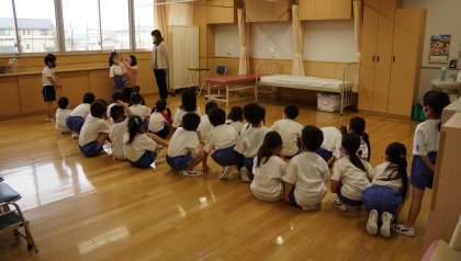 1年生の身体測定の様子です。身長と体重と視力を測りました。