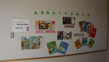 図書室の廊下には,新刊本の紹介コーナーがあります。興味のある本をたくさん読んで欲しいと思います。