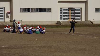 3年2組が,体育の授業で「ボールスロー」の練習をしていました。