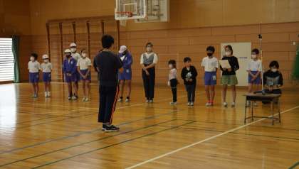 昼休みに,体育館で開会式の練習を行いました。