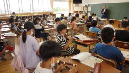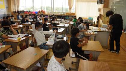 4年生は,1組が音楽を,2組は算数の学習をしていました。