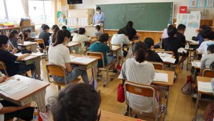 6年生は,1組が算数を、2組は国語の学習をしていました。