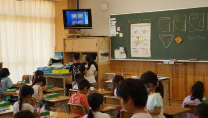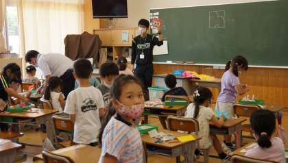 1年生は,折り紙を使っでいろいろな形を作っていました。