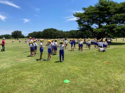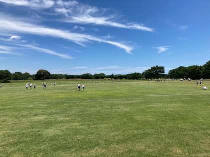広場一杯に広がって遊んでいます。