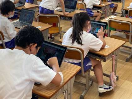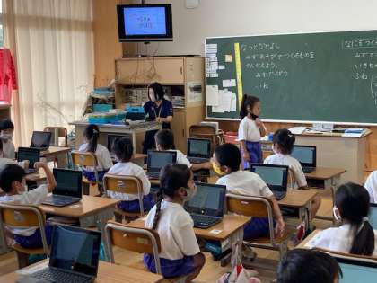 1年生は、来週の持ち帰りに向けて「タブレット」の使い方を学んでいます。だいぶ慣れて切った様子です。