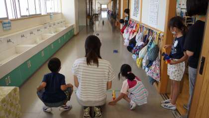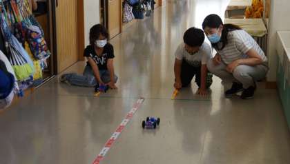 3年1組が,ゴムの力の学習をしていました。力の違いについて、工夫をしながら学んでいました。