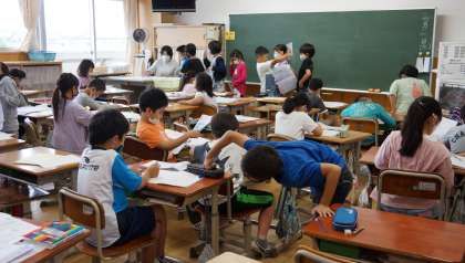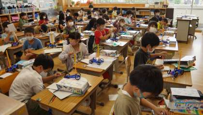 3年1組は理科で,車の模型を改良していました。2組は漢字の学習をしていました。