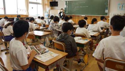 6年1組は国語で,私たちにできることの提案文について,2組は社会で卑弥呼について学習していました。