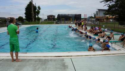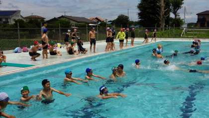 プール学習 公開日 2021/07/07 更新日 2021/07/07 校内行事 4年生が,3,4校時目に待ちに待った「プール学習」を行いました。風が冷たく感じましたが,みんな元気いっぱい泳ぐことができました。
