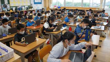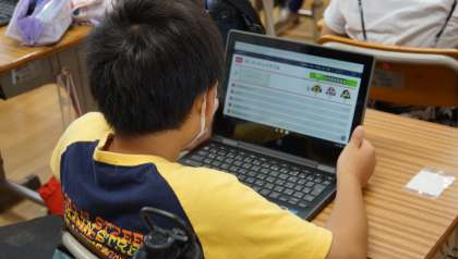 4年1組は,タブレットを使ってドリル学習を行っていました。