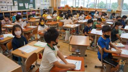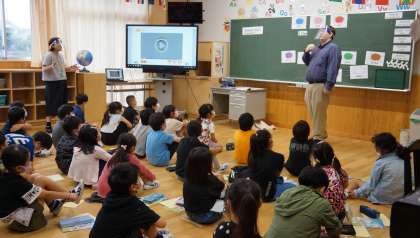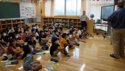3年1組はイングリッシュルームで英語の学習を,2組は算数の確認テストを行っていました。
