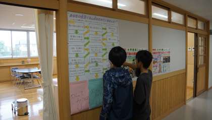 保健室の廊下にある「生活リズムチェック」を行っている児童がいました。自分の生活を振り返るよい機会となったようです。