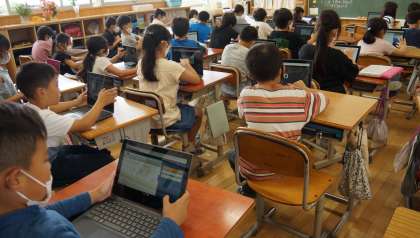 3年生は,タブレットを使ってドリル学習を行っていました。