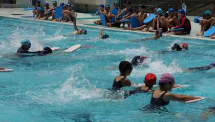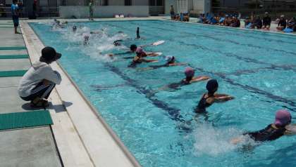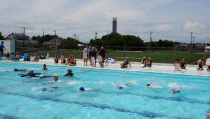 4年生がプール学習を行いました。もう,夏の空になっていました。みんな元気に水しぶきを上げていました。