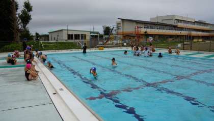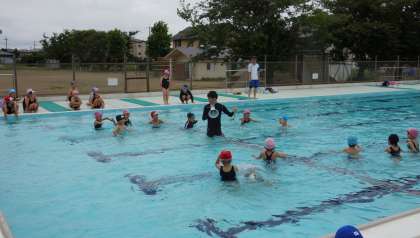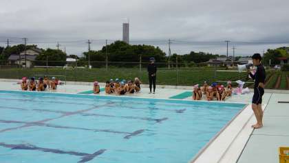1年生がプール学習を行いました。みんな,水を怖がりながらも,安全に行うことができました。